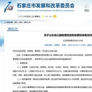 原标题:最新!石家庄市公办幼儿园收费有调整