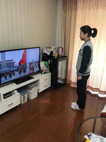 图说:光明中学学生参加云升旗仪式
