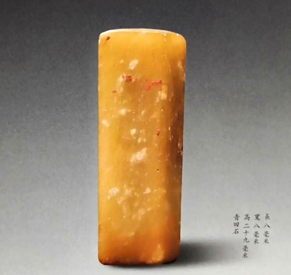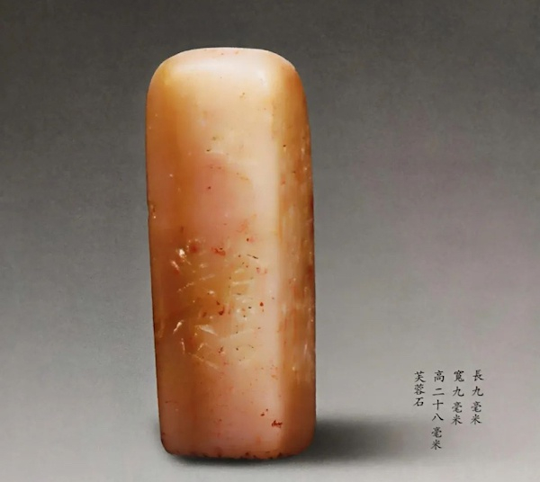 昌硕先生自用印,为白文小印,侧款:“蕪青亭余蕪園亭名也,蒼石吴俊。”印无年款,疑为先生三十五岁前作品。风格参汉,字体取篆隶之间,尤其“蕪”字取隶体明显。印文布局上下紧左右松,疏通了印面气息。框线细如游丝,形直而曲。顶线底线更是若无实有作呈横波状,即显印面之高古,又破“蕪”、“亭”二字横线多而易生的呆滞。“蕪”字作隶体下部的四点及“長”字取汉篆,下部“己”取略圆势给横直线过多的印面带来了轻松。