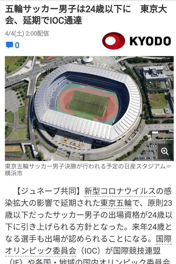 东京奥运足球参赛球员标准变为U24