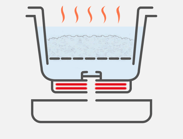 二沥:超过刻度线的米汤会被排出,实现米汤分离。