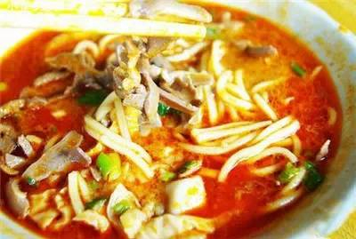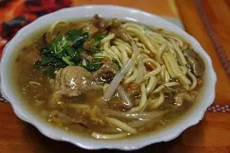 做法简单,碱水油面烫熟,再随自己的口味加入荤素辅料,最后浇一勺大锅里滚开的沙茶汤,汤色红亮,咸鲜香辣,回味甘甜。