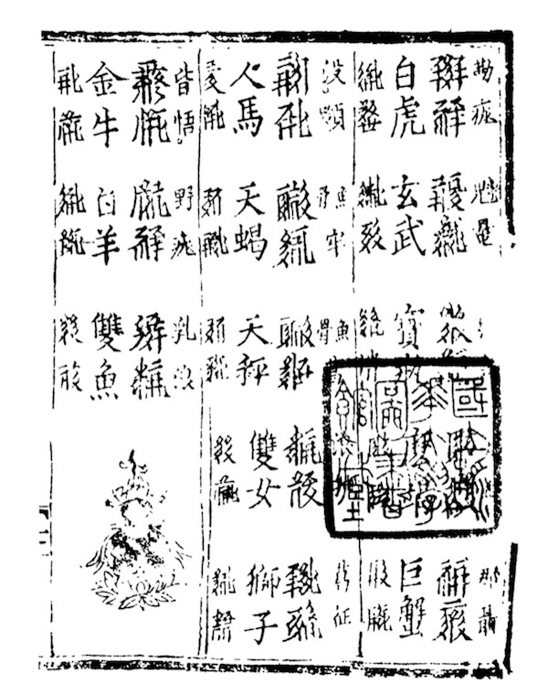 《番汉合时掌中珠》里面《天相中》编目下描述星座的一纸。《番汉合时掌中珠》是1190年西夏学者骨勒茂才编纂的西夏语和汉语双解词典,全书共37页,共收录词语414条,每一词语并列四项,自右向左为西夏文汉字注音、西夏文、汉文、汉文西夏文字注音,此书完整本现藏俄国。
