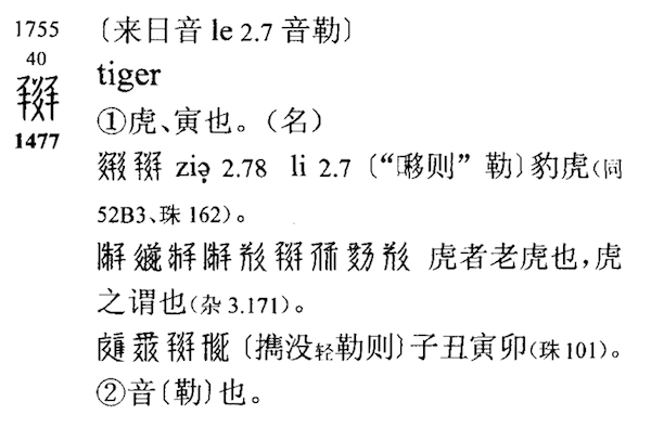 《简明夏汉字典》176页中的西夏文“虎”的词条,中国社会科学出版社2012年版,李范文编