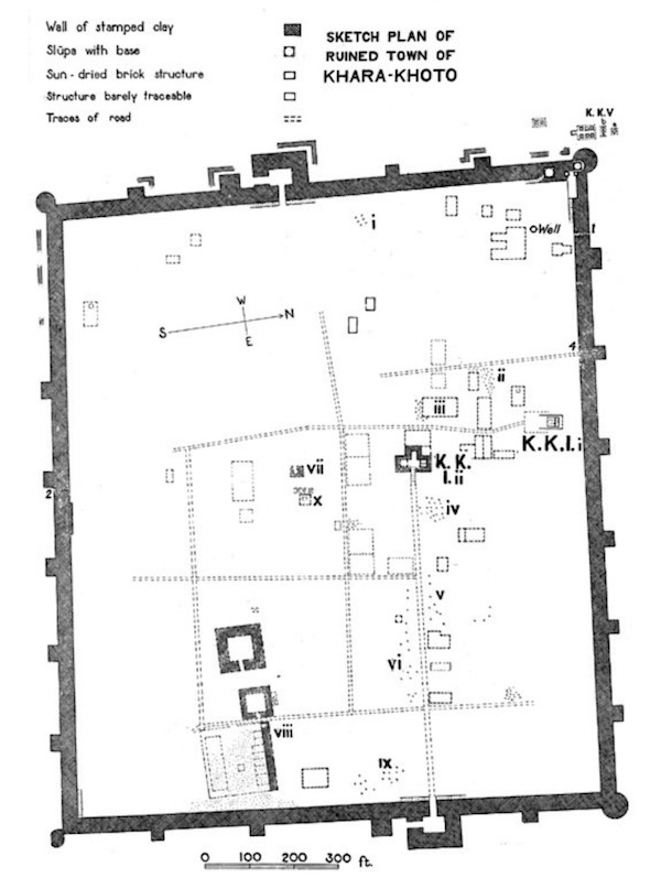 1914年,斯坦因绘制的黑水城平面图。这是第一次将黑水城按照比较精确的比例绘制而成的平面图。