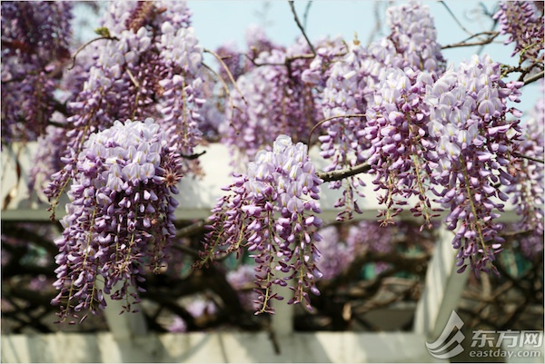 远远望去,紫藤就像一串串熟透了的葡萄,开得浪漫空幽。