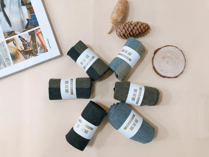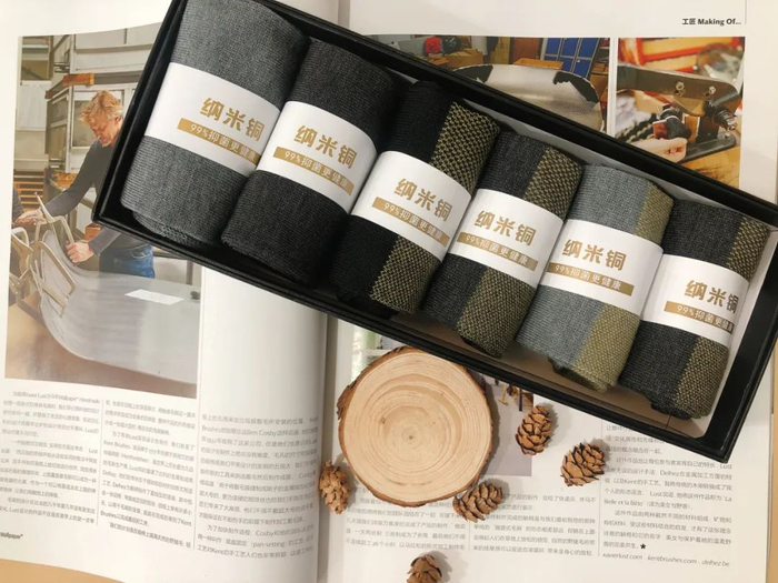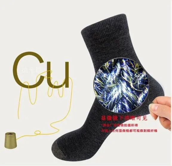 这款袜子,采用纳米铜专利抑菌技术,纳米铜分布在袜子面料的纤维里。
