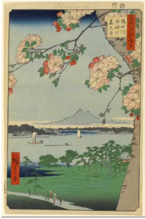 但在东方文化中,春却带有不同的含义。中国绘画中的《游春图》和无数花卉小品自不必提。日本艺术中提供的也是一个宁静的春天。樱花是日本浮世绘中最常见的主题,而歌川广重、葛饰北斋等画家也善于描绘娇嫩的樱花在大自然中的绽放,以及人们聚集在一起欣赏花开花落。但今年的樱花树下却难以聚集。