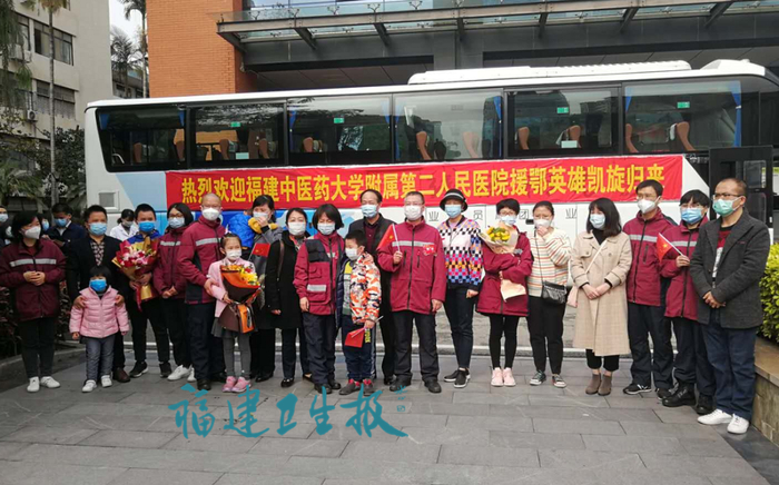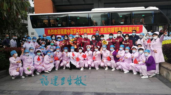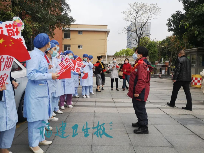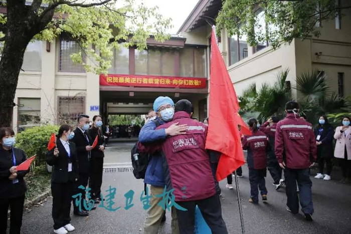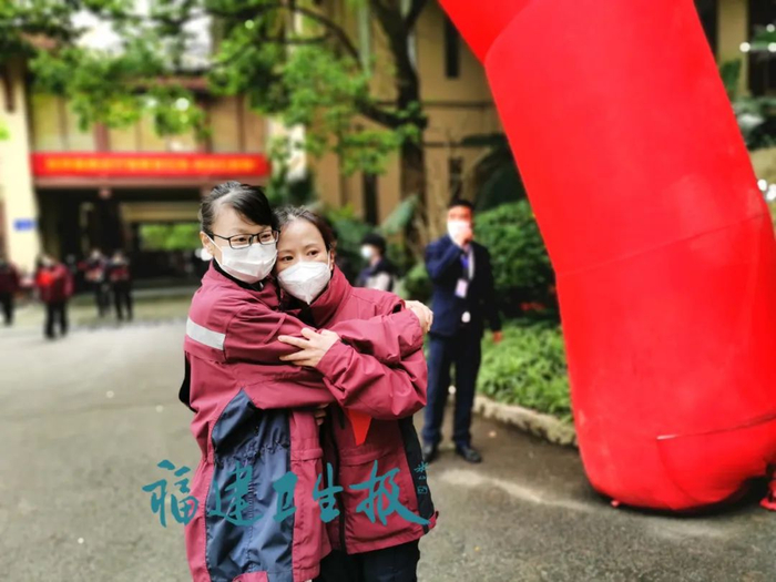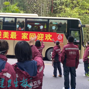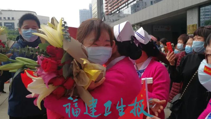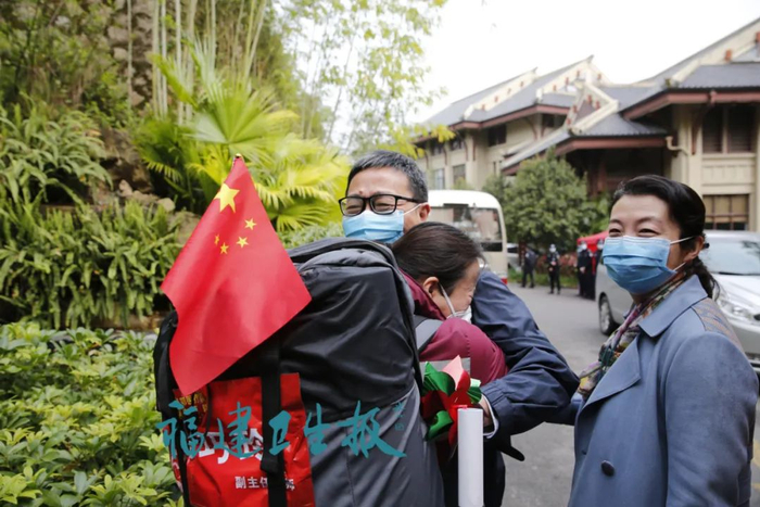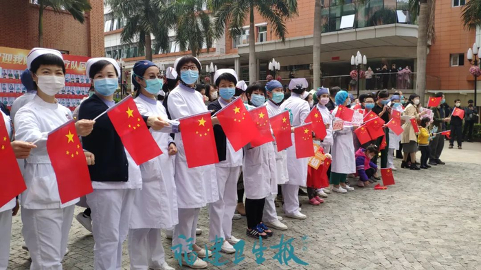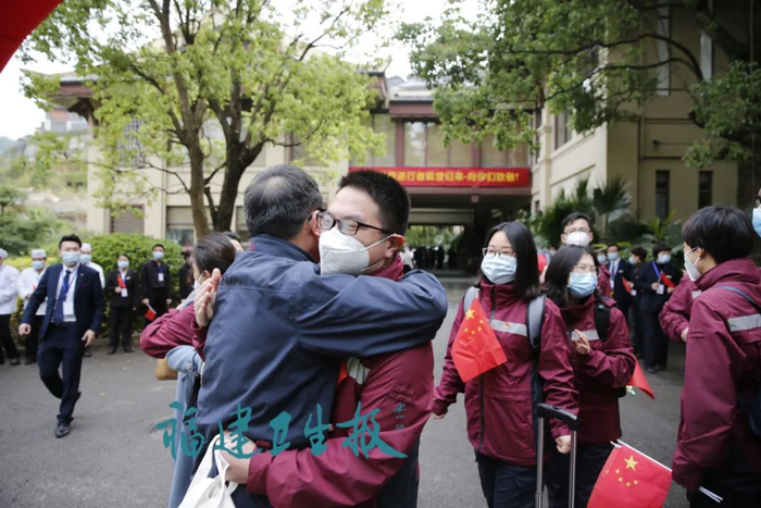 在福建医科大学附属第一医院,医院领导、同事们还有队员家属们夹道欢迎队员们回家。见到亲人、同事们,队员们抑制不住激动的心情,流下了眼泪。
