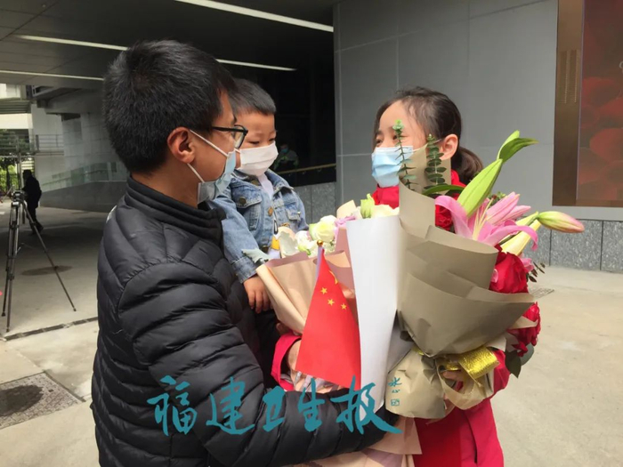 林晓婷护士回家,全家七八个亲人五六点起来从石狮赶来迎接她。72天没见儿子,儿子认生得不让妈妈抱了,腼腆地给妈妈献上一枝花。林小婷说,“要回去多陪他玩”。