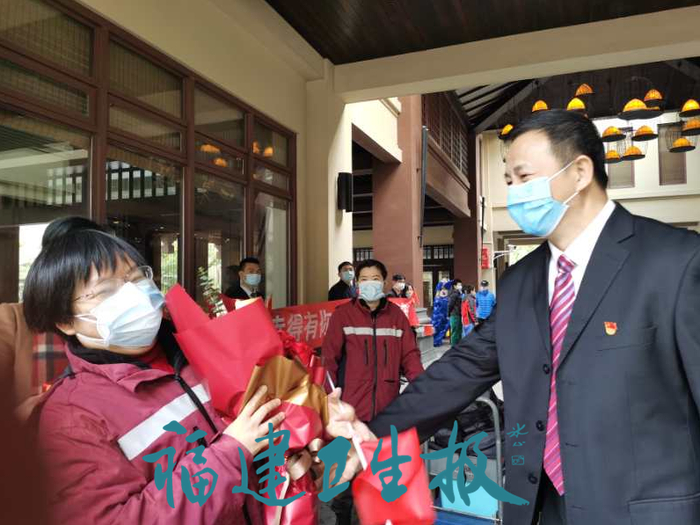 福州市第二医院党委书记张帆、福州市第二医院院长林凤飞现场迎接队员们回家!