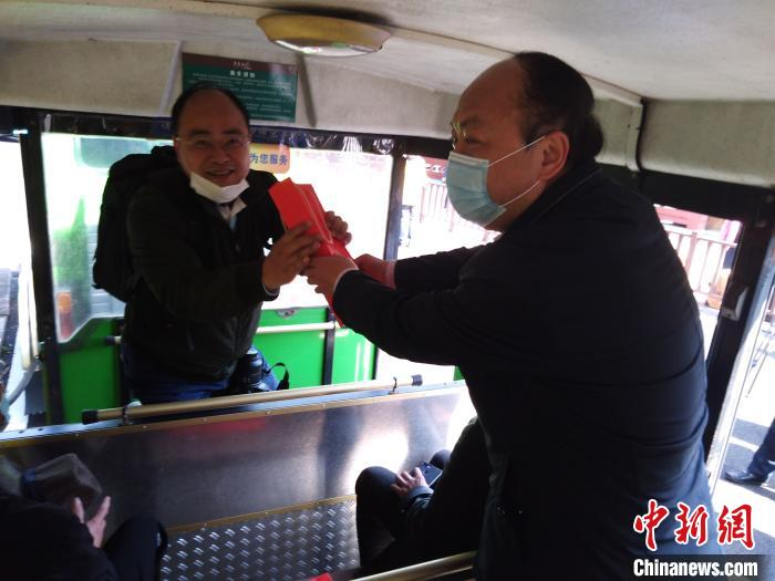 4月8日,首批旅客获赠茶礼。 张丽君 摄