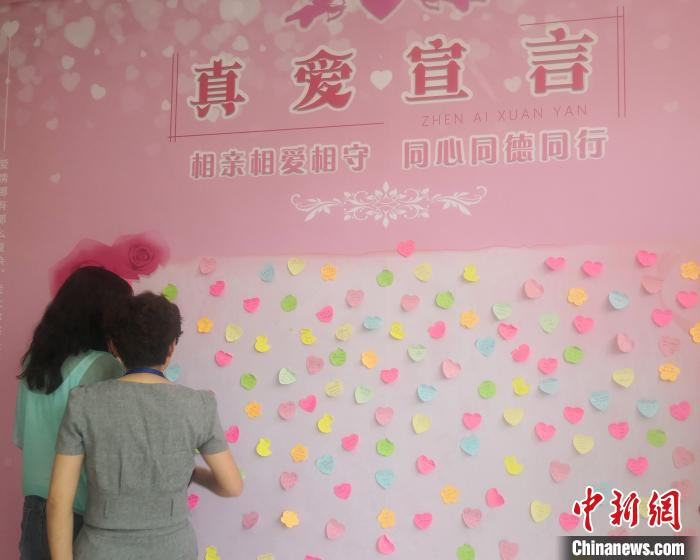 图为兰州市城关区婚姻登记大厅内的真爱宣言墙。(资料图) 崔琳 摄