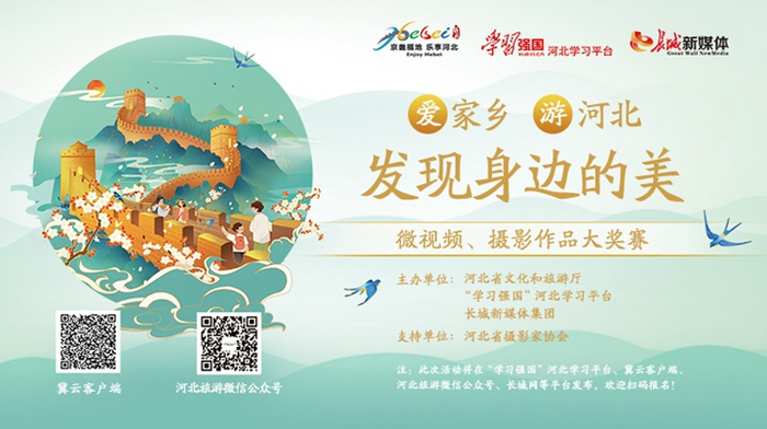 由河北省文化和旅游厅、“学习强国”河北学习平台、长城新媒体集团联合主办,河北省摄影家协会支持的“爱家乡 游河北 发现身边的美”微视频、摄影作品有奖征集活动正火热进行中!