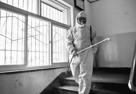 8日上午10时,虎峪校区同泽苑宿舍2号楼,门口有防控疫情宣传栏,红色消毒脚垫摆放在入口处,设有专人测量体温,记者来到这里的时候,工作人员正在对每个宿舍和楼道进行喷洒消毒作业。“每个宿舍不超6人,每天定时消毒。每个校区还设立了观察隔离区。”学校宿舍管理负责人介绍。