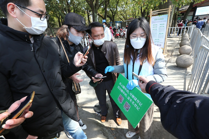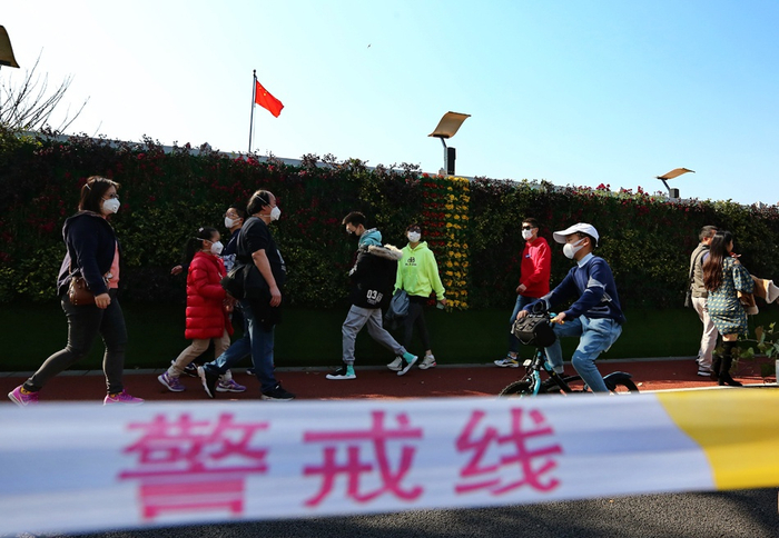 2020年3月14日,上海,共青森林公园因疫情闭园后首次开放。