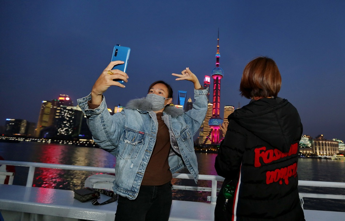 2020年3月15日,上海外滩,浦江游览船因疫情停航后首航 。