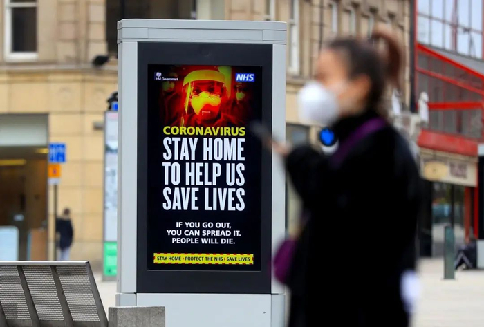 英国大街上宣传”不要出门“的海报。图据法国24台