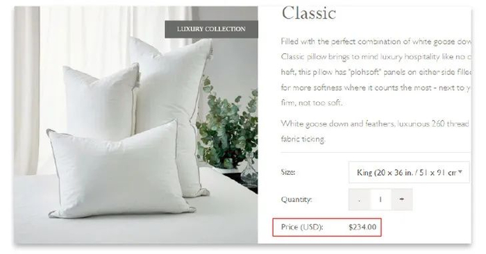 回想起酒店那款羽绒枕,好奇一搜,原来由品牌商特殊定做,据说有95%白鹅绒含量。一看价格,竟要200美金(约1000多元人民币)。