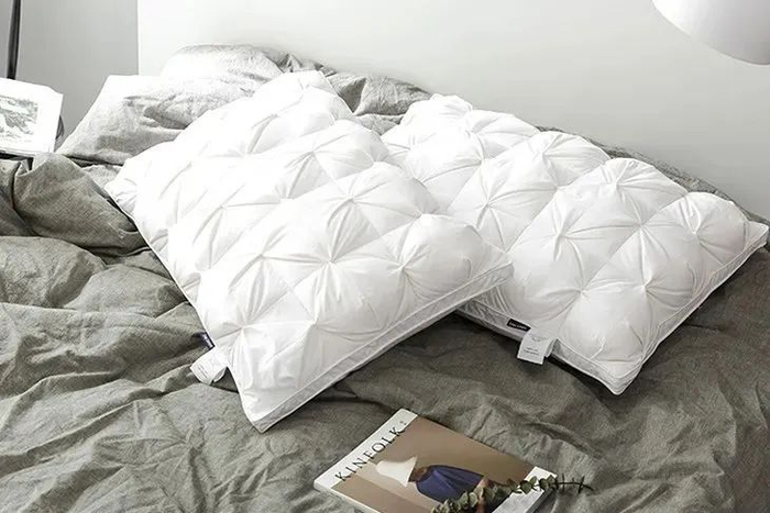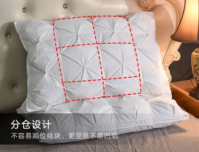 每个仓像面包一样鼓鼓的,比起没“分仓”的羽绒枕,更坚挺不易凹陷。