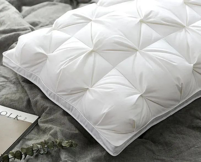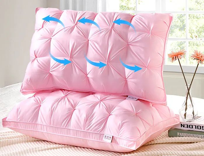 仓的表面还有一个个凸起的扭花纹,不仅让枕头更好看,还让枕芯表面更加立体,让更多羽绒填满凸起的缝隙,不易压扁。