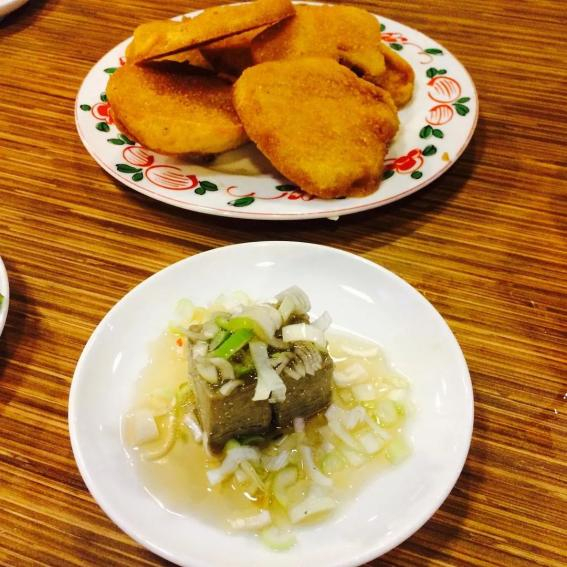那就试试!一次跟朋友去吃羊蝎子,看到菜单上有“臭豆腐炸窝头片”,果断来了一份。