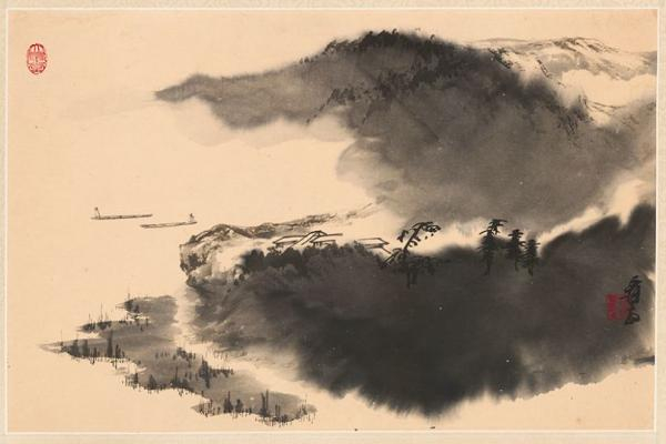 张大千泼彩山水画