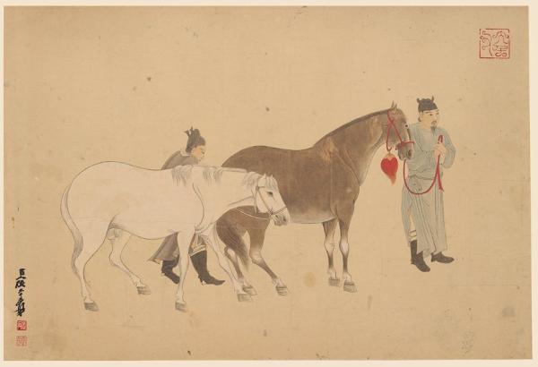 张大千《二人二马图》