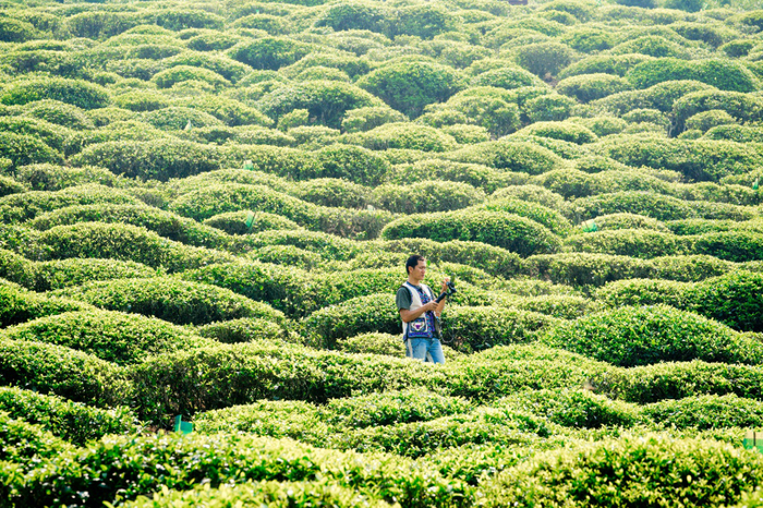 ▲胡德芳在元阳县一片茶园里直播,不走寻常路的他,也总能給他的粉丝带去不同的体验。