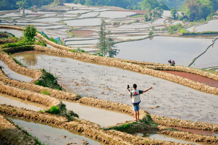 50小时前,胡德芳来到是世界文化遗产地,元阳梯田。在千百年哈尼人劳作的现场,背着娃娃回家的农妇、田埂杆赶鸭子的大爷构成一幅幅真实的“诗和远方”。胡德芳一个田埂接着一个田埂的走,本想尽早下线赶路,奈何粉丝们“不依不饶”,要求看个够、聊个够,他“就范”了,这场田埂上的直播持续了两个多小时。