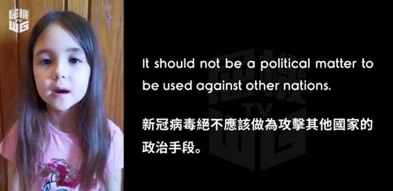 【环球网报道 记者 赵友平】“新冠病毒不应该成为攻击其他国家的政治手段。”“我要对一些国家领导人说,请不要再互相攻击,先放下自己的私利。”对于“中国病毒言论”,她反驳说,野生动物全世界都有,没人知道病毒的出处。最近,香港七岁女童吴若彤用英语流利地阐述对新冠病毒看法的视频火了。