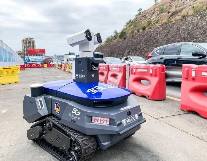 深圳电信与深圳公安联合开发的“5G机器人义警”在疫情阻击战中投入使用。宝安区警方在部分高速检查站设置了“5G机器人义警”巡逻,机器人具备6个摄像头,其中包括1个红外摄像头,支撑全天候高清视频回传,实现人脸识别,并对现场重点人员检测后预警;同时,“机器人义警”还可以协助民警在高速路口对人员及时提醒,无接触扫码登记。按警方评估,投入1个机器人义警,可以节省4个警力,也减少人员近距离接触带来的感染风险。