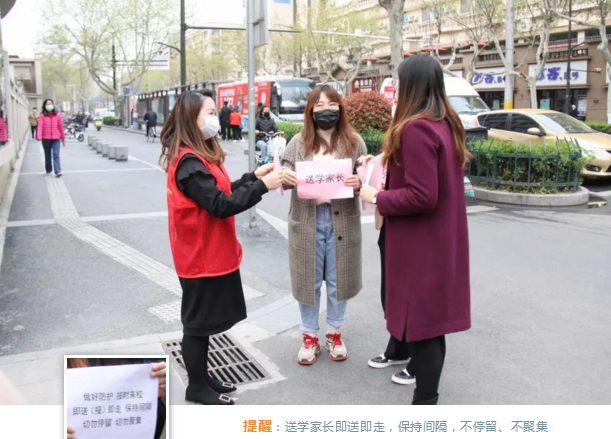 “因为爱你,离你1米”、“1米才是爱的距离”、“文明生活,1米是‘健康线’”……在瑞金路小学,学校制作了很多朗朗上口的爱心小提示。在环境处置上,瑞小制作了很多简洁明了的防控海报,如“进入校园须知”、“家长接送须知”、“医学观察隔离区,闲人勿近勿入”、“体温监测处”等等,让人一目了然。