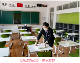 近日南外雨花国际学校还组织全员开展新冠肺炎疫情防控培训和应急演练活动。疫情防控演练依照学校制定的方案和应急预案,按学生入校、晨午检、上课、错峰就餐等场景进行全方位演习,并模拟了入校体温异常、上课出现不适等情景的应急处置流程。