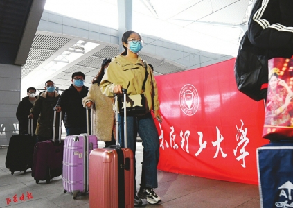 当日10时40分许,20余名学子坐着学校派往火车站的大巴,回到了久违的校园。因为在火车站已经消毒、测温、登记,他们一下车,就分散开来,迫不及待地走向自己的宿舍。