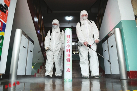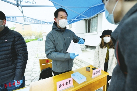经过再次测量体温和消杀后,在登记进入公寓时,每一位返校学生还收到了一份由校疫情防控工作领导小组办公室精心编制的《生活学习指南》,指南对疫情期间的各种学习生活服务进行了详细介绍。“每个宿舍入住不超过6名学生,每天公寓都会对每间宿舍定时消毒。”公寓管理员许国胜介绍说,学生返校后实行全封闭管理,上课、居住、饮食、文化等活动相互独立,尽量缩小活动范围。学校在各个校区都设置了集中隔离医学观察区,在重点区域设置了临时观察室,并配备了相关设施,安排了专用车辆,用于疑似病例的转移运输。