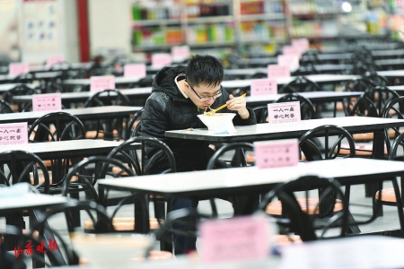 据介绍,山西大学共有10家餐厅,能同时容纳1700人分桌就餐。为了尽可能减少人员密集就餐,学校采取了分时段错峰就餐的方式。早餐分两个时段,午餐和晚餐分三个时段,因座位限制无法现场就餐的学生,学校提供打包服务,带回宿舍用餐。
