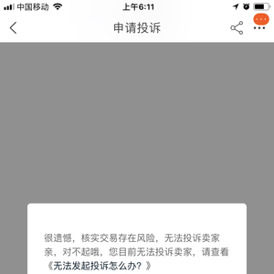 消费者“匿名”在4月13日向黑猫投诉平台再次反映:“任何订单均无法投诉卖家,显示“核实交易存在风险,无法投诉卖家”。所有订单均显示无法投诉,淘宝直接关闭了我的维权通道!反而是所有订单都无法投诉商家,不同的商家都试了,都说交易存在风险,无法投诉商家,如此保护感觉是阿里保护商家,设置一个摆设,实际无法进行投诉,本人按照阿里客服提示,查询账号信息,无问题,阿里端查询也无问题”