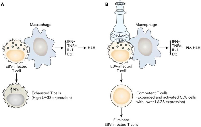 PD-1抗体治疗EBV相关噬血细胞综合症机理示意图