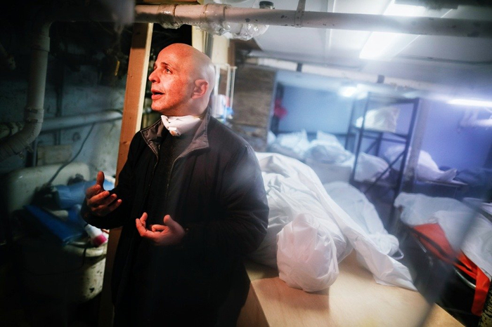 图为纽约市布鲁克林区的葬仪社老板派特.马尔摩(Pat Marmo)。瘟疫之下的丧葬需求暴增太多——就算他把所有可用的办公空间都改装成临时冰柜,但不断送进来的尸体仍塞爆了公司所有还能安置的空间。 图/美联社
