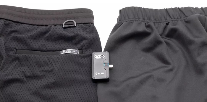 而普通裤子(右)上还能看出较清晰的手掌心热度,基本没有散热功能。