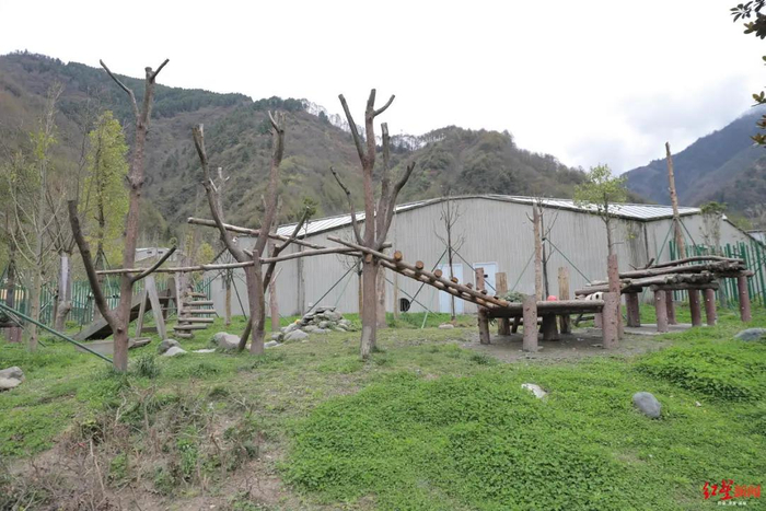 ▲2020年4月12日,神树坪熊猫基地,大熊猫幼儿生活区,远处是丰容吊球