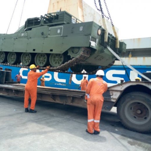 尼日利亚日前接收了订购自中国的17辆VT-4主战坦克、SH-2车载炮、ST-1轮式突击炮等新装备,这些重型装备是通过海运抵达尼日利亚港口的。