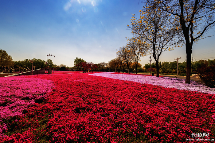 芝樱,又名“丛生福禄考”,花色有深桃红、粉红及白色等。紧贴地面生长,花密集而鲜艳。在石家庄园艺工作者的精心设计下,绚丽绽放的芝樱花,仿佛张开了一张彩色的地毯。
