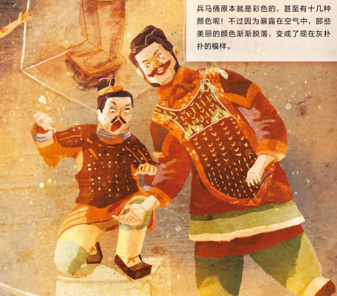 孩子们立刻就会知道这个重要知识点,兵马俑原本就是彩色的。