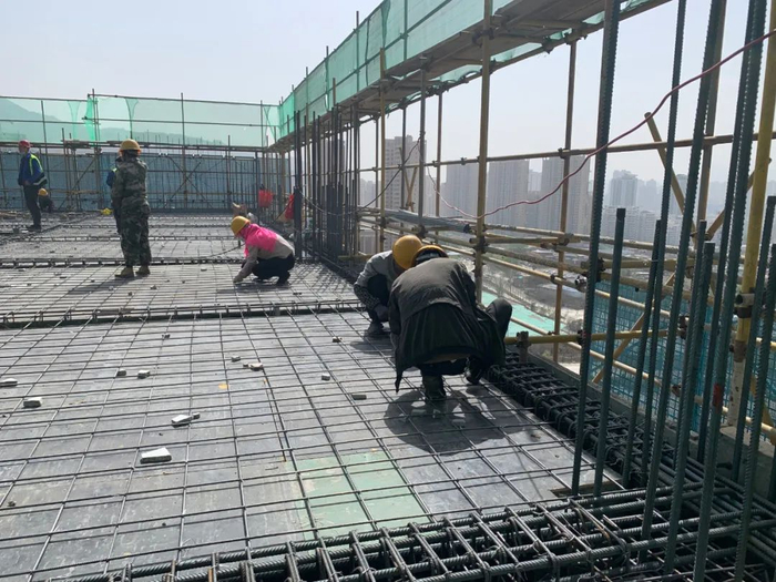 4月15日早上天气晴好,在安宁区人民医院翻建工程一期医疗综合楼施工地,塔吊吊钩挥舞着“手臂”来回穿梭运送着钢筋,在施工的14楼层,30余名技术工人熟练地进行着钢筋绑扎、水电管预埋等作业,一派有序又繁忙的景象。“工程目前进度为一流水主体十五层梁板钢筋绑扎,模板加固完成85%;二流水主体十三层梁板钢筋绑扎模板加固完成80%。现在每天加班加点赶工期,计划5月底能完成主体封顶。”甘肃一建集团安宁区人民医院翻建工程项目部经理 严小东介绍道。