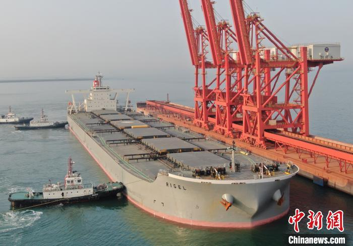 中新网烟台4月16日电 (王娇妮 严纲轩)装载着来自非洲几内亚27.52万吨铝矾土的“猎户座”轮16日在山东港口烟台港进行接卸作业,这是近一个月来烟台港接卸的第2艘30万吨级铝矾土船。