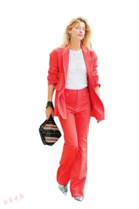 在颜色选择上,除了百搭的黑色烟管裤外,大家还可以尝试浅色系的烟管裤。颜色清新的烟管裤不仅能给人清爽的感觉,并且修饰腿型的效果同样不容小觑。烟管裤搭配雪纺衬衫,会给人一种大方利落又不失柔美的感觉,适合职场穿搭,而在出游中,可选择烟管裤搭配T恤和运动鞋,舒适方便还时髦有活力。烟管裤还能与今年大热的西装外套搭配,飒爽利落有气场,而与春天常见的卫衣搭配,舒适感显而易见。