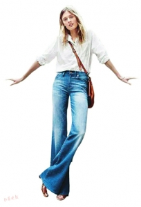 喇叭裤也称“妈妈裤”,仅听到这个叫法就能感受到它满满的复古感。在时下“复古风”盛行的时尚圈,喇叭裤自然占有一席之地。喇叭裤之所以会一直受到人们喜欢,其中最主要的原因便是它那魔术般的显瘦功能,上窄下宽的裤型能够完美修饰小腿腿形,包容性强。另外,相对于很多“中性风”的裤装,喇叭裤更加妩媚动人。