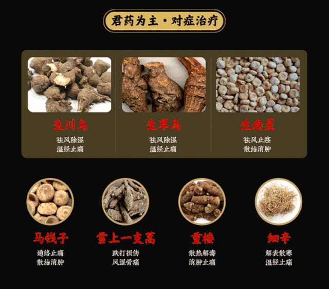 草药配伍也是很重要的一环。生川乌、生草乌、生南星等等,都是较常用于舒缓肌肉关节酸痛的良药。